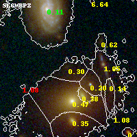 Black segments are analyzed here. Roll mouse over color images to view segments. Best viewed in a wide browser window (1200 pixels or more). Download SED & P(z) plots to view larger versions.
