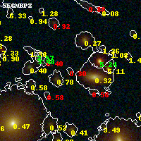 Black segments are analyzed here. Roll mouse over color images to view segments. Best viewed in a wide browser window (1200 pixels or more). Download SED & P(z) plots to view larger versions.