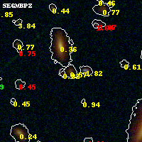 Black segments are analyzed here. Roll mouse over color images to view segments. Best viewed in a wide browser window (1200 pixels or more). Download SED & P(z) plots to view larger versions.