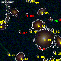 Black segments are analyzed here. Roll mouse over color images to view segments. Best viewed in a wide browser window (1200 pixels or more). Download SED & P(z) plots to view larger versions.