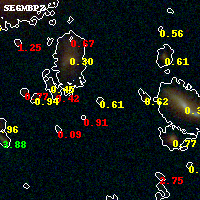 Black segments are analyzed here. Roll mouse over color images to view segments. Best viewed in a wide browser window (1200 pixels or more). Download SED & P(z) plots to view larger versions.
