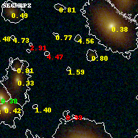 Object #2499   x,y = (2066, 2002)   RA, Dec = (11:50:53.352, -28:05:26.52) = (177.72230, -28.09070)   BPZ = 1.587 [0.399--7.076]   type = 8.40 (SB1_B10 - SB2_B10)   stellarity = 0.33   chisq2 = 0.37   ODDS = 0.11   z_cluster = 0.390