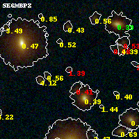 Black segments are analyzed here. Roll mouse over color images to view segments. Best viewed in a wide browser window (1200 pixels or more). Download SED & P(z) plots to view larger versions.