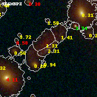Black segments are analyzed here. Roll mouse over color images to view segments. Best viewed in a wide browser window (1200 pixels or more). Download SED & P(z) plots to view larger versions.
