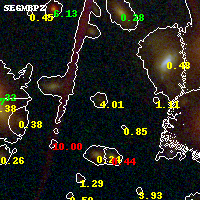 Black segments are analyzed here. Roll mouse over color images to view segments. Best viewed in a wide browser window (1200 pixels or more). Download SED & P(z) plots to view larger versions.