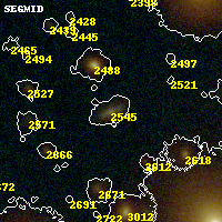 Black segments are analyzed here. Roll mouse over color images to view segments. Best viewed in a wide browser window (1200 pixels or more). Download SED & P(z) plots to view larger versions.