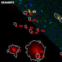 Black segments are analyzed here. Roll mouse over color images to view segments. Best viewed in a wide browser window (1200 pixels or more). Download SED & P(z) plots to view larger versions.