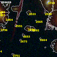 Black segments are analyzed here. Roll mouse over color images to view segments. Best viewed in a wide browser window (1200 pixels or more). Download SED & P(z) plots to view larger versions.