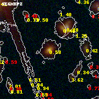 Black segments are analyzed here. Roll mouse over color images to view segments. Best viewed in a wide browser window (1200 pixels or more). Download SED & P(z) plots to view larger versions.