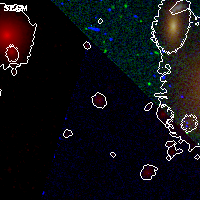 Black segments are analyzed here. Roll mouse over color images to view segments. Best viewed in a wide browser window (1200 pixels or more). Download SED & P(z) plots to view larger versions.