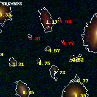 Black segments are analyzed here. Roll mouse over color images to view segments. Best viewed in a wide browser window (1200 pixels or more). Download SED & P(z) plots to view larger versions.