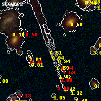 Black segments are analyzed here. Roll mouse over color images to view segments. Best viewed in a wide browser window (1200 pixels or more). Download SED & P(z) plots to view larger versions.