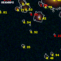 Black segments are analyzed here. Roll mouse over color images to view segments. Best viewed in a wide browser window (1200 pixels or more). Download SED & P(z) plots to view larger versions.