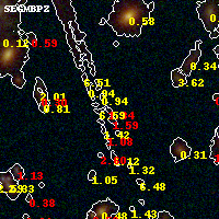 Black segments are analyzed here. Roll mouse over color images to view segments. Best viewed in a wide browser window (1200 pixels or more). Download SED & P(z) plots to view larger versions.