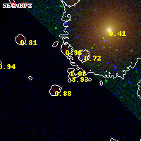 Object #2839   x,y = (735, 1775)   RA, Dec = (11:50:59.376, -28:05:39.84) = (177.74740, -28.09440)   BPZ = 1.078 [0.433--10.276]   type = 8.00 (SB1_B10)   stellarity = 0.00   chisq2 = 0.29   ODDS = 0.04   z_cluster = 0.390