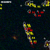 Black segments are analyzed here. Roll mouse over color images to view segments. Best viewed in a wide browser window (1200 pixels or more). Download SED & P(z) plots to view larger versions.
