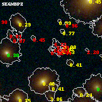 Black segments are analyzed here. Roll mouse over color images to view segments. Best viewed in a wide browser window (1200 pixels or more). Download SED & P(z) plots to view larger versions.
