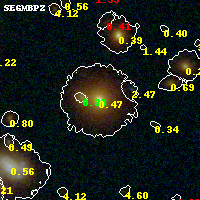 Black segments are analyzed here. Roll mouse over color images to view segments. Best viewed in a wide browser window (1200 pixels or more). Download SED & P(z) plots to view larger versions.