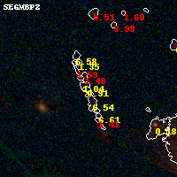 Black segments are analyzed here. Roll mouse over color images to view segments. Best viewed in a wide browser window (1200 pixels or more). Download SED & P(z) plots to view larger versions.