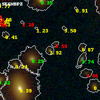 Black segments are analyzed here. Roll mouse over color images to view segments. Best viewed in a wide browser window (1200 pixels or more). Download SED & P(z) plots to view larger versions.