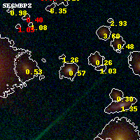Black segments are analyzed here. Roll mouse over color images to view segments. Best viewed in a wide browser window (1200 pixels or more). Download SED & P(z) plots to view larger versions.