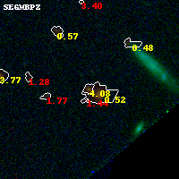 Black segments are analyzed here. Roll mouse over color images to view segments. Best viewed in a wide browser window (1200 pixels or more). Download SED & P(z) plots to view larger versions.