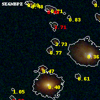 Black segments are analyzed here. Roll mouse over color images to view segments. Best viewed in a wide browser window (1200 pixels or more). Download SED & P(z) plots to view larger versions.