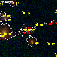 Black segments are analyzed here. Roll mouse over color images to view segments. Best viewed in a wide browser window (1200 pixels or more). Download SED & P(z) plots to view larger versions.