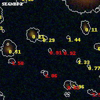 Black segments are analyzed here. Roll mouse over color images to view segments. Best viewed in a wide browser window (1200 pixels or more). Download SED & P(z) plots to view larger versions.