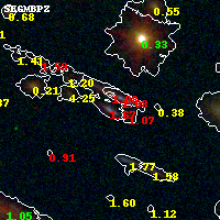 Black segments are analyzed here. Roll mouse over color images to view segments. Best viewed in a wide browser window (1200 pixels or more). Download SED & P(z) plots to view larger versions.