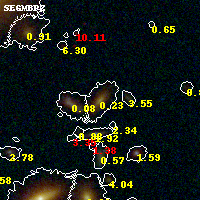 Black segments are analyzed here. Roll mouse over color images to view segments. Best viewed in a wide browser window (1200 pixels or more). Download SED & P(z) plots to view larger versions.