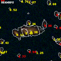 Black segments are analyzed here. Roll mouse over color images to view segments. Best viewed in a wide browser window (1200 pixels or more). Download SED & P(z) plots to view larger versions.