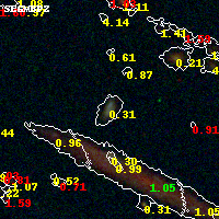Black segments are analyzed here. Roll mouse over color images to view segments. Best viewed in a wide browser window (1200 pixels or more). Download SED & P(z) plots to view larger versions.