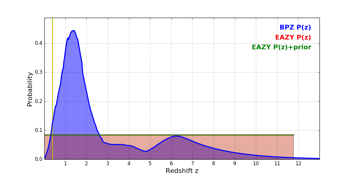 In P(z) plots: Yellow lines mark the cluster redshift z = 0.390,