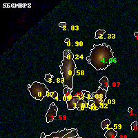 Black segments are analyzed here. Roll mouse over color images to view segments. Best viewed in a wide browser window (1200 pixels or more). Download SED & P(z) plots to view larger versions.