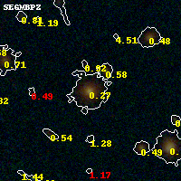 Black segments are analyzed here. Roll mouse over color images to view segments. Best viewed in a wide browser window (1200 pixels or more). Download SED & P(z) plots to view larger versions.