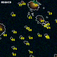 Black segments are analyzed here. Roll mouse over color images to view segments. Best viewed in a wide browser window (1200 pixels or more). Download SED & P(z) plots to view larger versions.