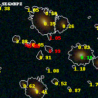 Black segments are analyzed here. Roll mouse over color images to view segments. Best viewed in a wide browser window (1200 pixels or more). Download SED & P(z) plots to view larger versions.