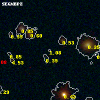 Black segments are analyzed here. Roll mouse over color images to view segments. Best viewed in a wide browser window (1200 pixels or more). Download SED & P(z) plots to view larger versions.