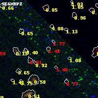 Black segments are analyzed here. Roll mouse over color images to view segments. Best viewed in a wide browser window (1200 pixels or more). Download SED & P(z) plots to view larger versions.