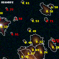 Black segments are analyzed here. Roll mouse over color images to view segments. Best viewed in a wide browser window (1200 pixels or more). Download SED & P(z) plots to view larger versions.