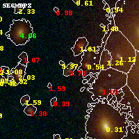 Black segments are analyzed here. Roll mouse over color images to view segments. Best viewed in a wide browser window (1200 pixels or more). Download SED & P(z) plots to view larger versions.