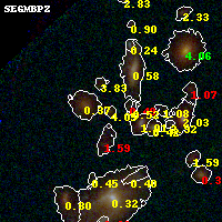 Black segments are analyzed here. Roll mouse over color images to view segments. Best viewed in a wide browser window (1200 pixels or more). Download SED & P(z) plots to view larger versions.