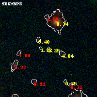 Black segments are analyzed here. Roll mouse over color images to view segments. Best viewed in a wide browser window (1200 pixels or more). Download SED & P(z) plots to view larger versions.