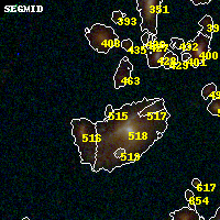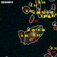 Black segments are analyzed here. Roll mouse over color images to view segments. Best viewed in a wide browser window (1200 pixels or more). Download SED & P(z) plots to view larger versions.