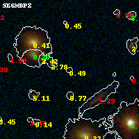 Black segments are analyzed here. Roll mouse over color images to view segments. Best viewed in a wide browser window (1200 pixels or more). Download SED & P(z) plots to view larger versions.