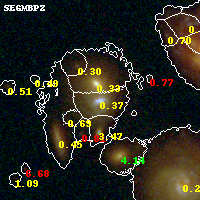 Black segments are analyzed here. Roll mouse over color images to view segments. Best viewed in a wide browser window (1200 pixels or more). Download SED & P(z) plots to view larger versions.