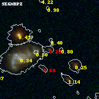 Black segments are analyzed here. Roll mouse over color images to view segments. Best viewed in a wide browser window (1200 pixels or more). Download SED & P(z) plots to view larger versions.