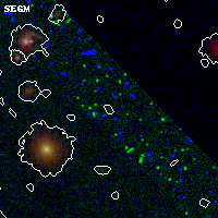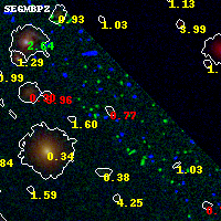 Black segments are analyzed here. Roll mouse over color images to view segments. Best viewed in a wide browser window (1200 pixels or more). Download SED & P(z) plots to view larger versions.