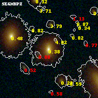 Black segments are analyzed here. Roll mouse over color images to view segments. Best viewed in a wide browser window (1200 pixels or more). Download SED & P(z) plots to view larger versions.